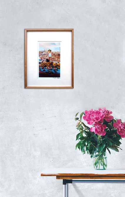 Fotografía realizada en tintas pigmentadas Epson sobre papel Ilford Gold Fibre Silk. Firmada a mano por la artista en el ángulo inferior izquierdo. Es una edición de 1.000 ejemplares. Enmarcada con marco de madera natural. Su medida con el marco incluido es alto 30 cm y ancho 25 cm. Un pequeño capricho ideal para coleccionistas de fotografía.